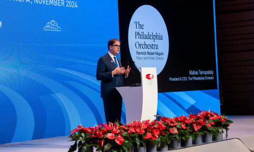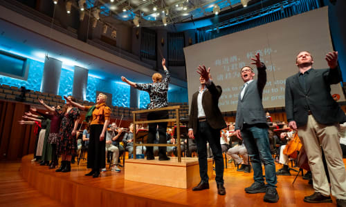 November 3, 2024The Orchestra’s third concert at the National Centre for the Performing Arts (NCPA) consisted mostly of excerpts from the iSing! International Festival’s "Echoes of Ancient Tang Poems," which was given its North American premiere by The Philadelphia Orchestra on its Lunar New Year Concert in 2023 and repeated at New York’s Alice Tully Hall. The program included the world premiere of a new work by acclaimed American composer Mason Bates, a setting of the Tang poem “Spring River Flowers by Moonlight.” The piece was co-commissioned by The Philadelphia Orchestra and Music and Artistic Director Yannick Nézet-Séguin and the China International Culture Association, with additional support from the US-China Cultural Institute, in memory of Shirley Young. A truly global celebration, the songs in "Echoes of Ancient Tang Poems" were written by young composers from around the world and sung by young artists from around the world.