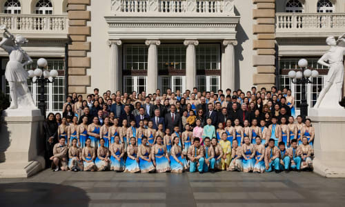Nov. 18, Shanghai: The final stop was the Marble Hall Room, where there was a joint performance with the Chinese Folk Music Orchestra of China Welfare Institute Children’s Palace Little Companion Art Troupe. Photo by Charlie Xia