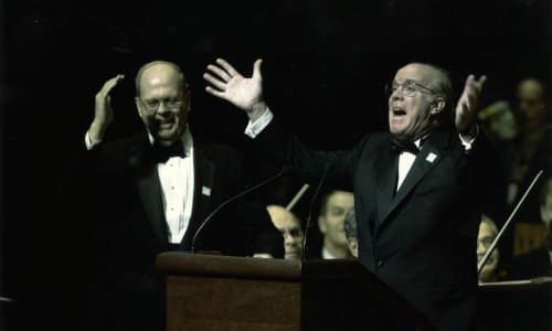 September 19, 2025Above: Philadelphia Orchestra Board Chair Richard L. Smoot (left) and Kimmel Center for the Performing Arts Board Chair Willard G. Rouse III at the opening of the Kimmel Center on December 15, 2001