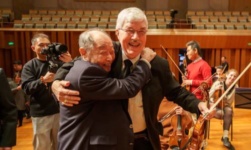Nov. 10, Beijing: Davyd is reunited with a member of the Central Philharmonic Society of China, whom he met on the 1973 tour. Photo by Todd Rosenberg
