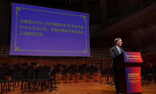 Nov. 10, Beijing: Ambassador Burns also made remarks and read President Biden’s letter aloud. “Music has the unique ability to take us back to the most cherished times, places, and memories in our lives. But it also moves us forward—helping transcend language, overcome geography, and unite cultures and communities around the world.” Photo by Todd Rosenberg