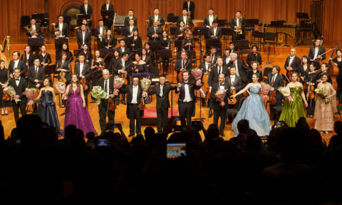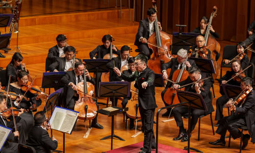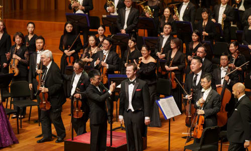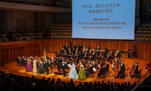 Nov. 10, Beijing: The ensemble was joined by a number of vocalists for four selections from “Echoes of Ancient Tang Poems,” originally produced at the iSING! Suzhou International Young Artists Festival and given its United States premiere with The Philadelphia Orchestra in January 2023. The songs that make up “Echoes of Ancient Tang Poems” were written by composers from around the world, and the vocalists, also from across the globe, sang in Mandarin. Photo by Todd Rosenberg