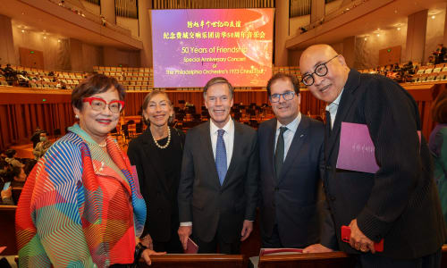November 12, 2023Today saw the Official 50th Anniversary Performance at the National Centre for the Performing Arts before an invitation-only audience of government officials, diplomats, and other dignitaries. Both President Biden and President Xi Jinping wrote letters acknowledging 50 years of cultural exchange between The Philadelphia Orchestra and the people of China. During the performance, news broke that Biden and Xi will meet in San Francisco next week.